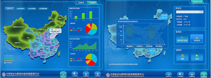 北京藍藍設計作品: 中國移動互聯網監控大屏可視化設計及開發