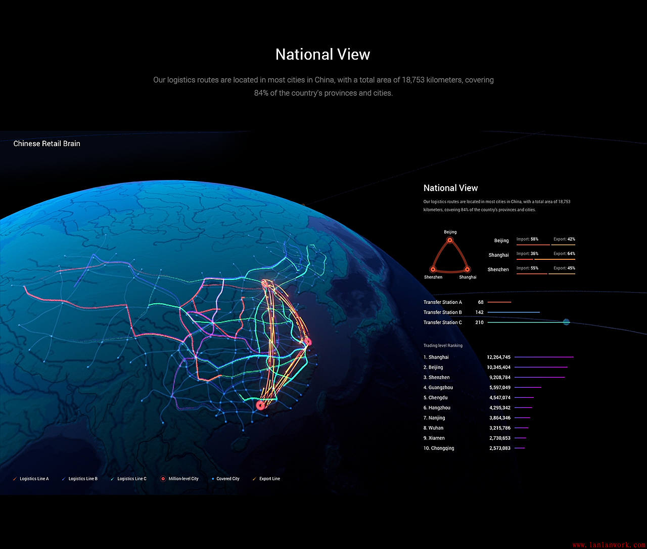 在集團企業中、以運維中心人員為用戶群體,通過大屏實時掌握業務數據情況,在系統設計時既要考慮數據的直觀性,又要考慮視覺疲勞,在其界面構思上要結合行業特點、數據特性進行策劃,以立體感形式表現更佳。