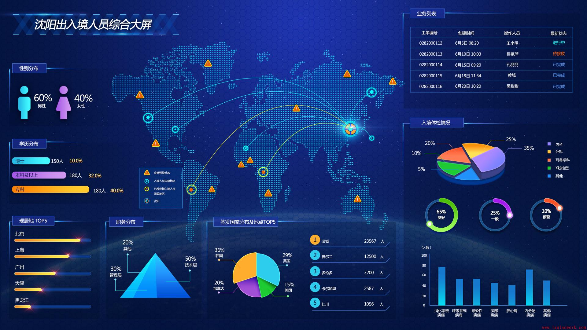 大屏可視化界面設計可謂是當今行業、企業發展的見證,生動直觀地再現了行業、企業的全貌。不僅作為展示,方便了解、監督;同時可以作為一個有效的管理平臺,帶來效益。大屏界面面向范圍廣,協同性好,易于被采用。下面幾個大屏的界面設計,沉穩的背景上,加上亮色作為點綴和強調。既不失其風格,又富有靈動性。