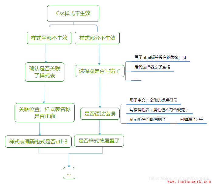 后代子代選擇等,涉及多個標簽,類名、id等,子選擇器的順序、名字等寫錯了,均可能導致出錯;