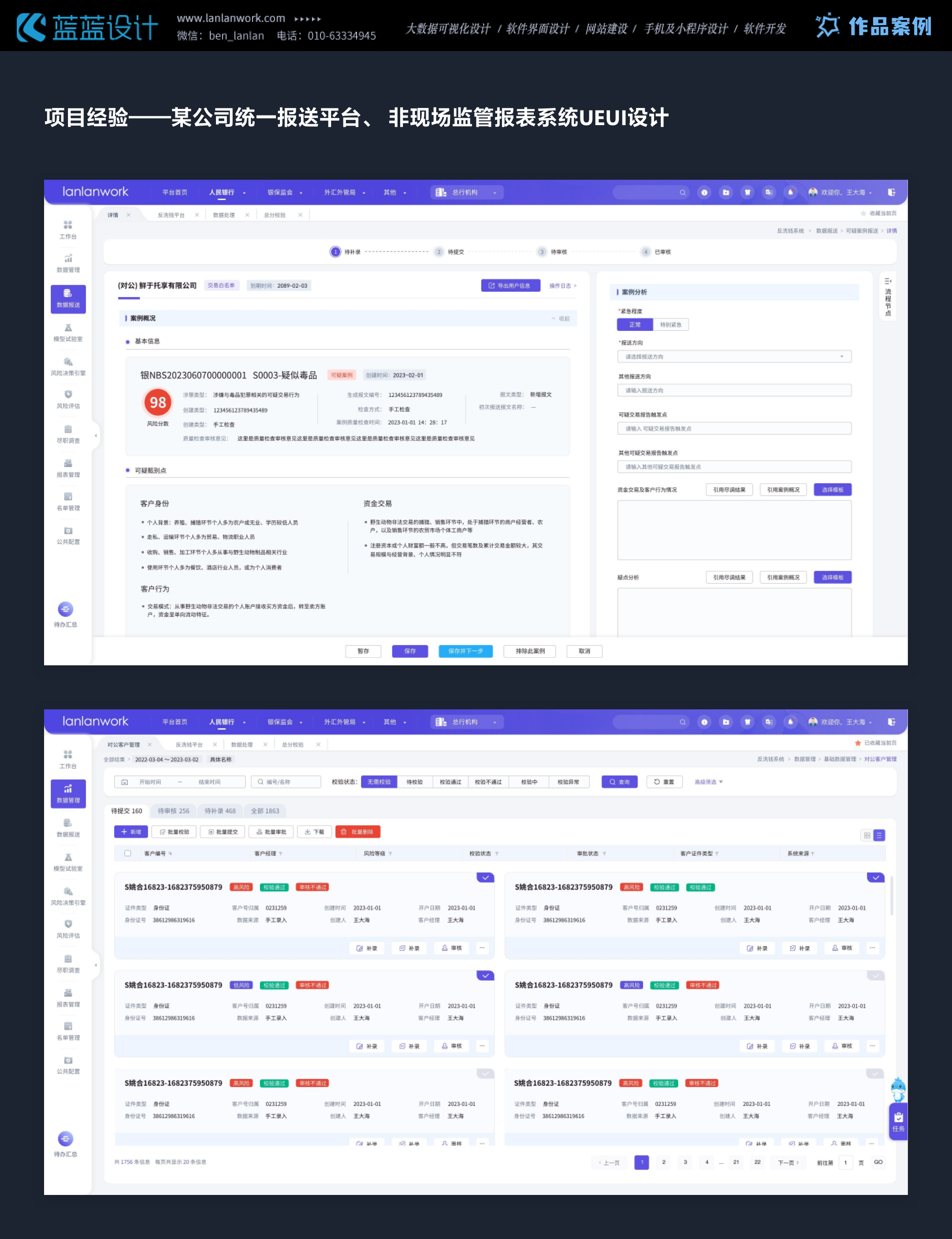 作為企業級監管系統的設計案例,藍藍設計的本次實踐證明:專業場景下的系統設計,不是 “功能的堆砌”,而是基于工作流程的體驗重構—— 通過界面布局、交互邏輯的優化,讓復雜的合規工作變得 “高效、清晰、可控”。