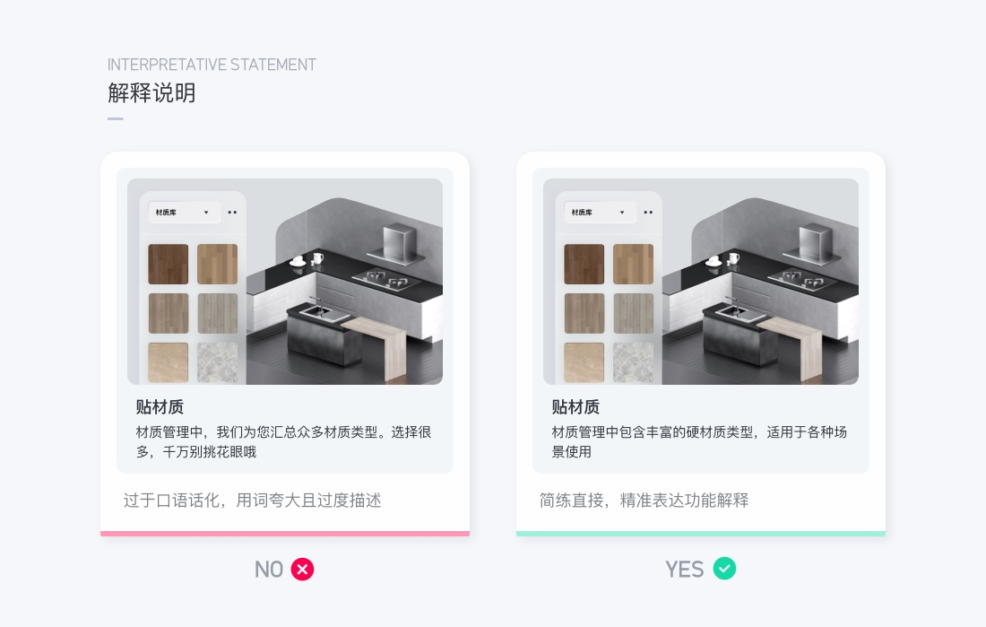 在界面交互中,文案作為信息傳遞的載體,占據的比重是最大的,在群核的產品中,我們規范了文案的表達提升信息表達的精準度,之前有針對工具文案做了梳理。