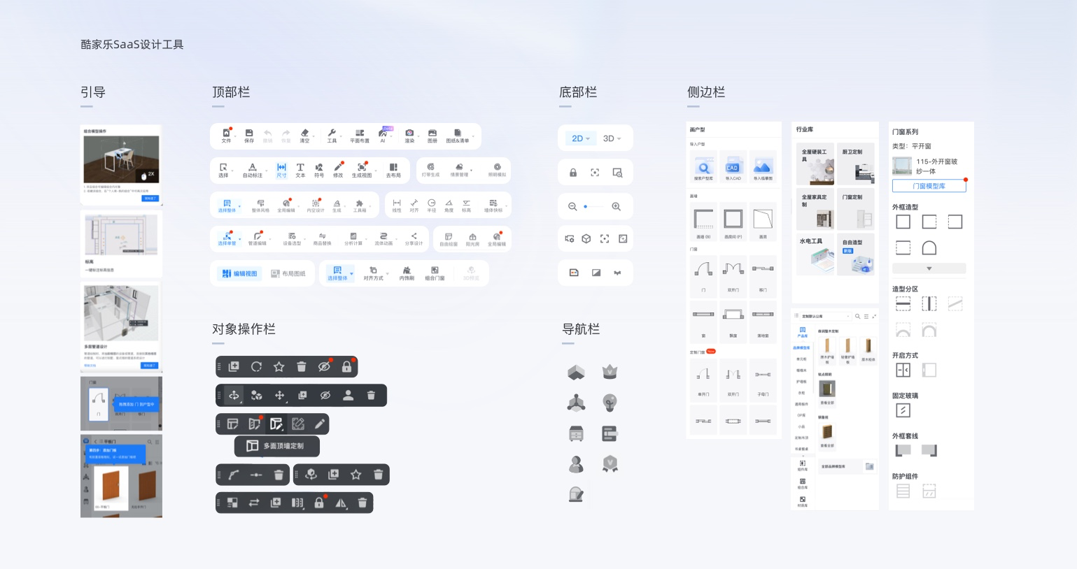 群核科技下產品正是這樣的特點,以酷家樂云設計工具為例,系統交互結合各行業垂類場景,各種命令、操作、引導、畫面控制等信息的表達很容易讓用戶疑惑。