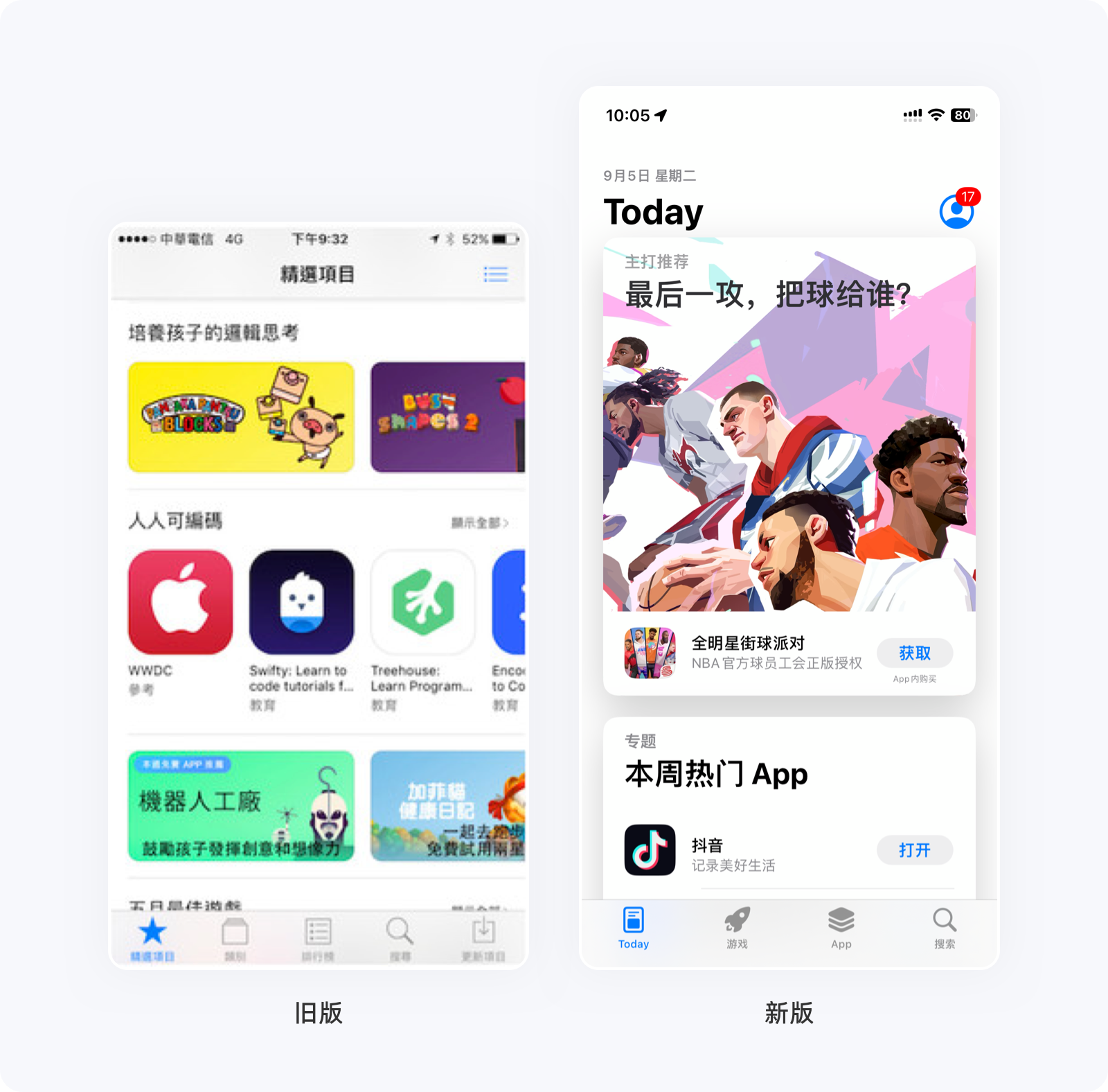 對用戶來說,選項越多就越復雜,需要的決策時間就越長,尤其是用戶在絕大多數情況下所看到的頁面都存在信息過剩的情況,這時候,產品需解決的不是選項夠不夠的問題,而是選項夠不夠好。當存在大量選項時,可適度減少選項的數量,不僅能降低用戶的思考時間,也提高了選項的質量。iPhone用戶應該比較清楚,蘋果始終在不遺余力的遵循希克定律,APP Store就是最好的例子,從改版前大量的推薦應用堆積到改版后信息量的減少,選擇目標瞬間清晰了很多,用戶體驗得到了大幅度的提升