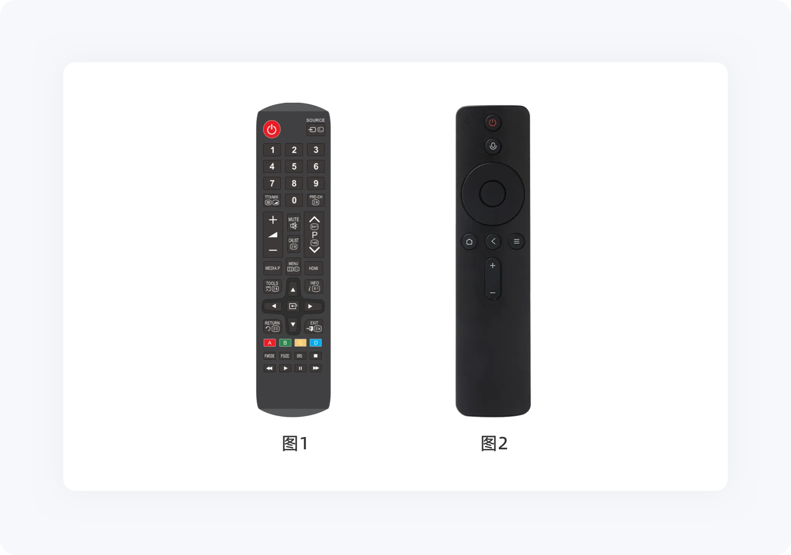 希克定律在我們生活中的使用隨處可見,如下圖的兩個遙控器,你更傾向于使用哪一個?毫無疑問,圖2不管是從視覺上、還是操作上都更簡單,特別是老少用戶,簡單地教一下就能快速學會。至于圖1,有些圖標、顏色、英文,很多年輕的用戶也不清楚到底是干什么的,要想搞清楚,則需要更多的時間成本、學習成本以及試錯成本,這就是希克定律在遙控器上的作用,以減少選擇讓用戶更快決策。遙控器的這個案例雖然在交互設計四策略中也體現的淋漓盡致,但與希克定律并不沖突,讓用戶減少選擇的方式可以是刪除、組合,也可以是隱藏、轉移。