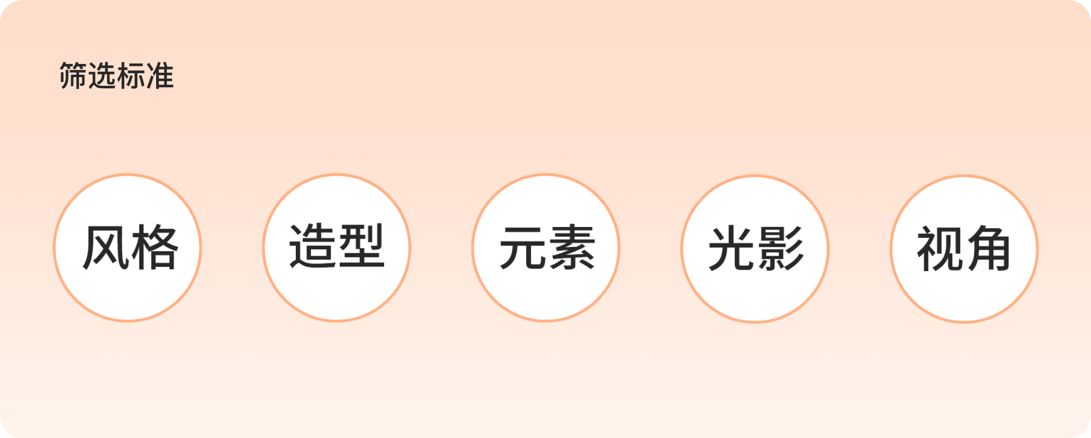 雖然這幾張圖的氛圍感不錯,但光有氛圍感是遠遠不夠的,基于對此次需求的理解,我們列舉了幾個篩選圖片的標準: