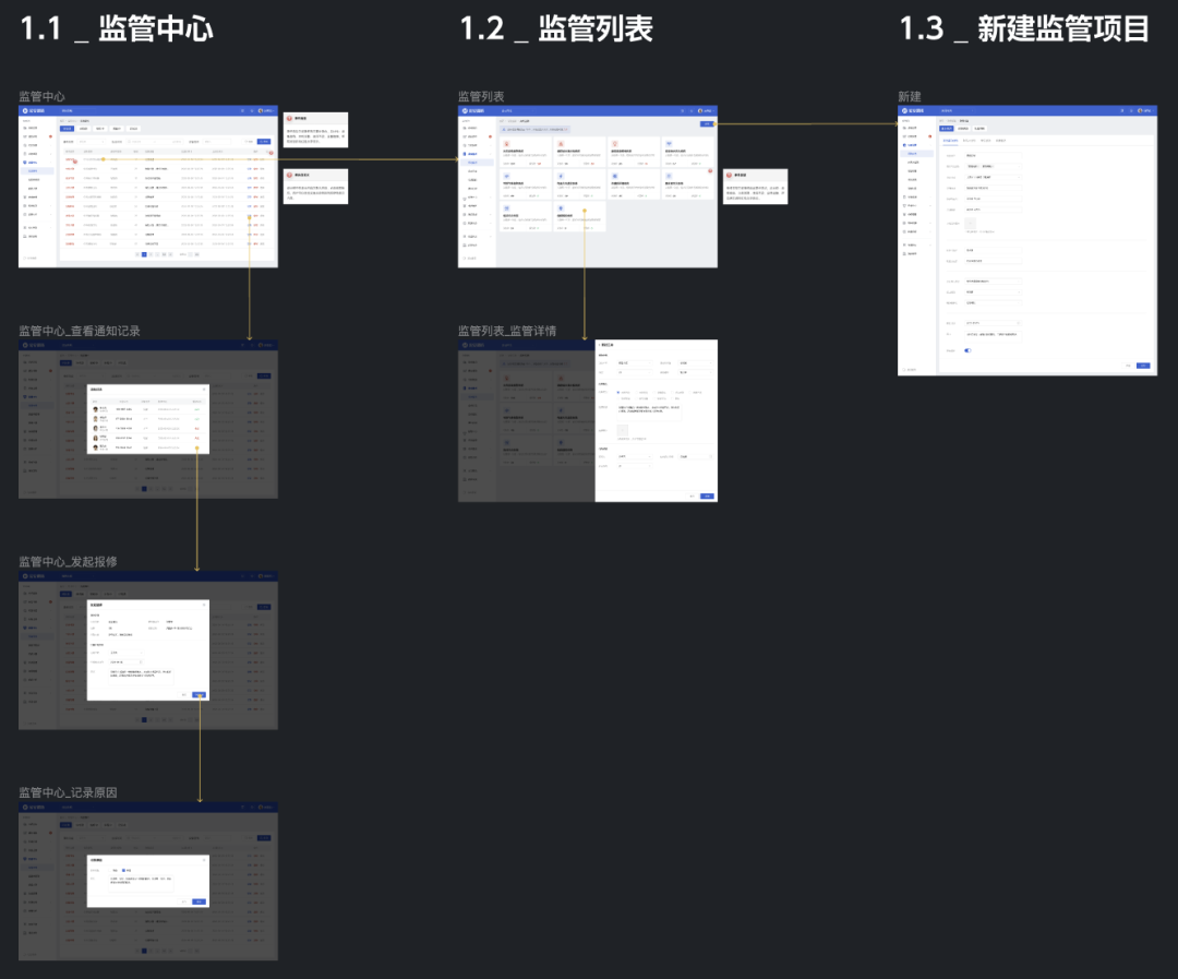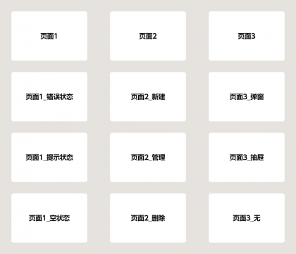 排列頁面時,也需要具有一定的邏輯,橫向一般表示不同的頁面,縱向表示同一個頁面的事件和狀態。并且橫豎間距盡量保持統一,建議左右不低于 800px,上下不低于200px 的間隔,這樣即不影響后續添加說明,也不影響前端查看頁面時被其它頁面干擾。