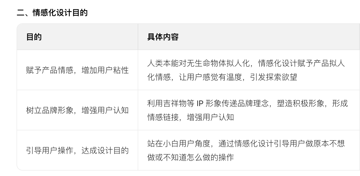 - 答案:本能層次即視覺層次的情感化設計,主要從三個方面實現。一是獨特的 IP 形象設計,利用高識別度 IP 形象拉近用戶與產品關系,打造品牌效應;二是風格明確的規范化設計,使界面整潔有品質感,讓用戶產生舒適情感;三是有趣的擬人化動作設計,通過產品擬人化互動反饋,讓用戶感到有趣。
