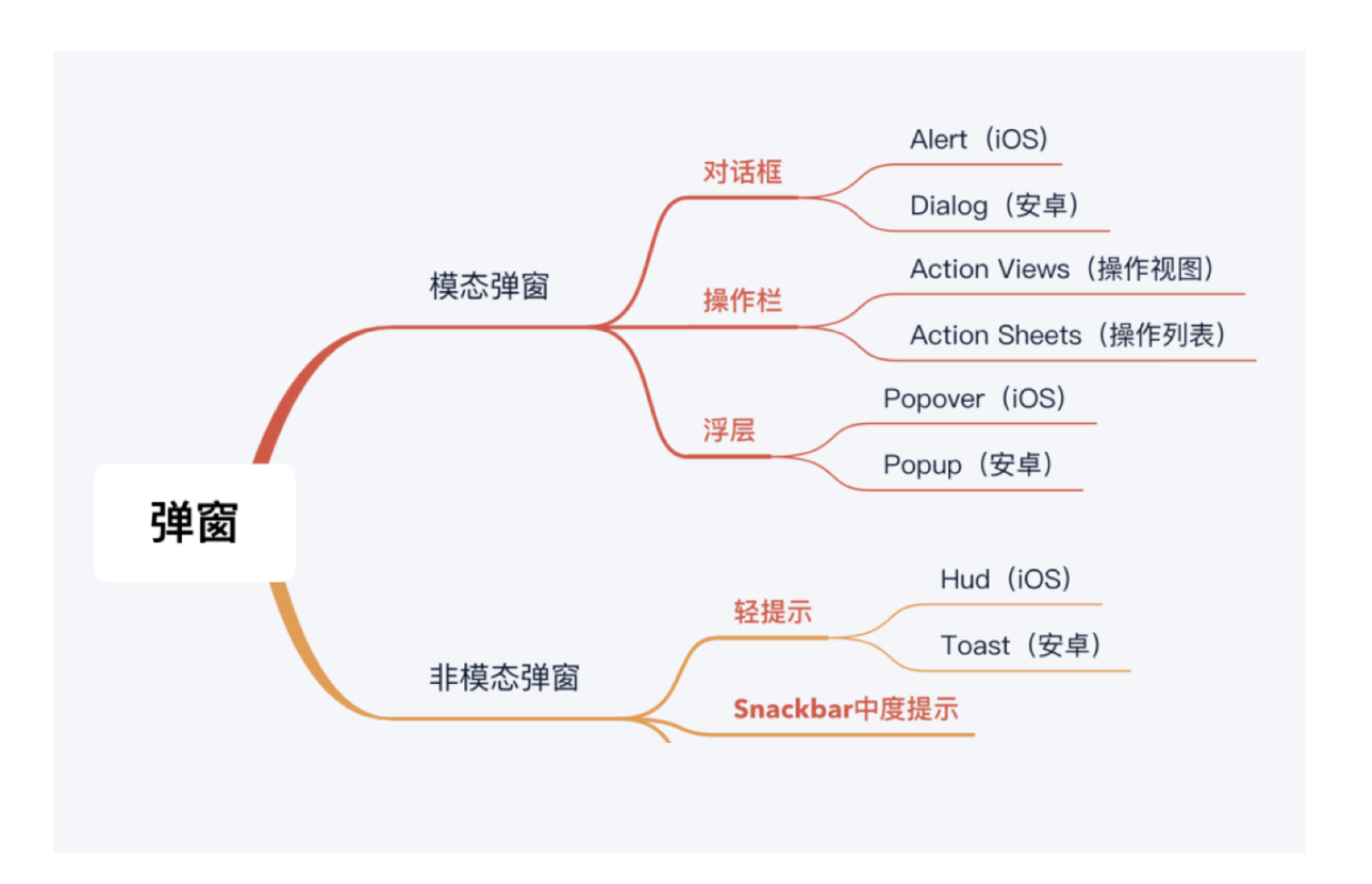 - 常見(jiàn)類型:對(duì)話框(Dialog/Alert)、底部動(dòng)作欄(Actionbar)、浮層(Popover/Popup)。