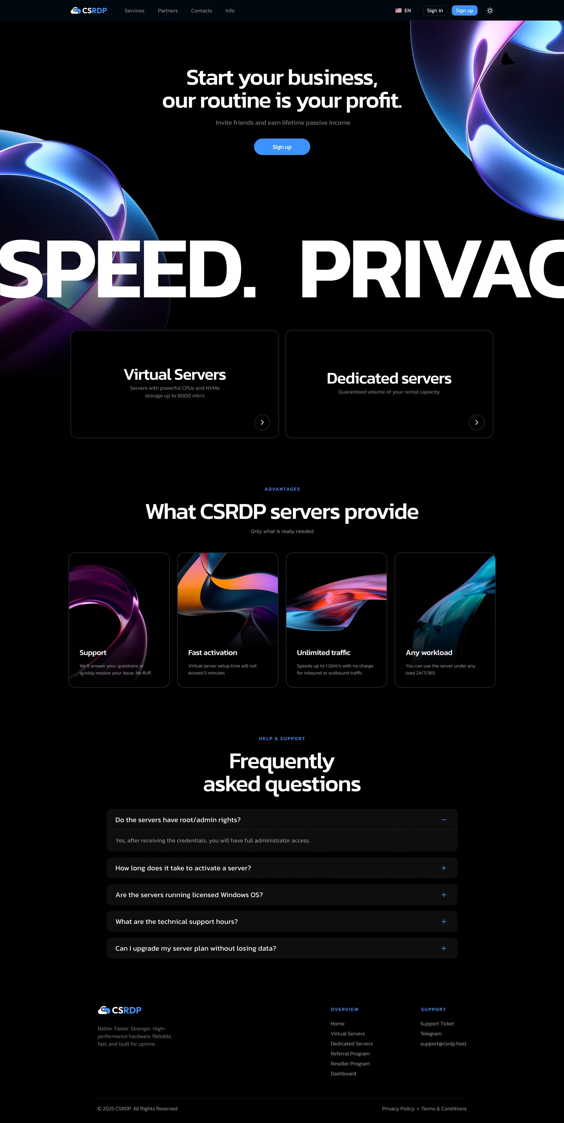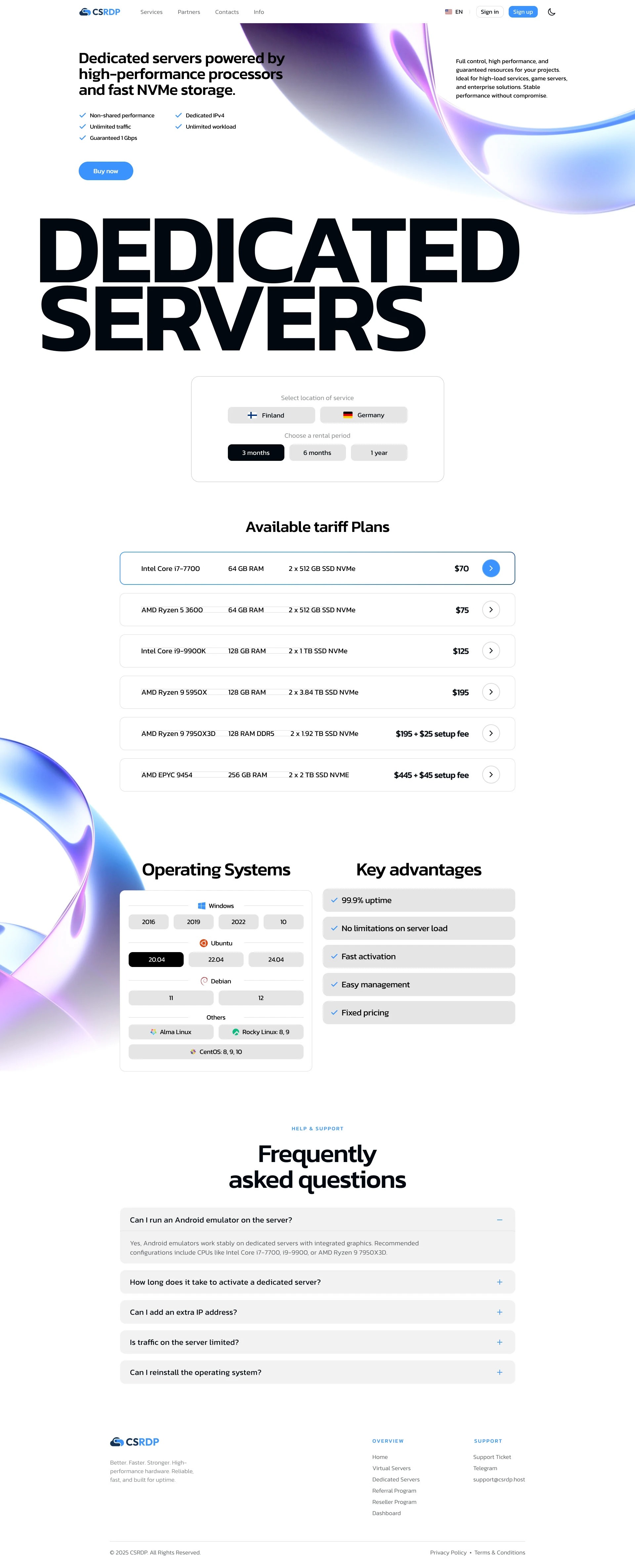 “Virtual Servers”和“Dedicated servers”兩大核心產(chǎn)品分區(qū)簡明。