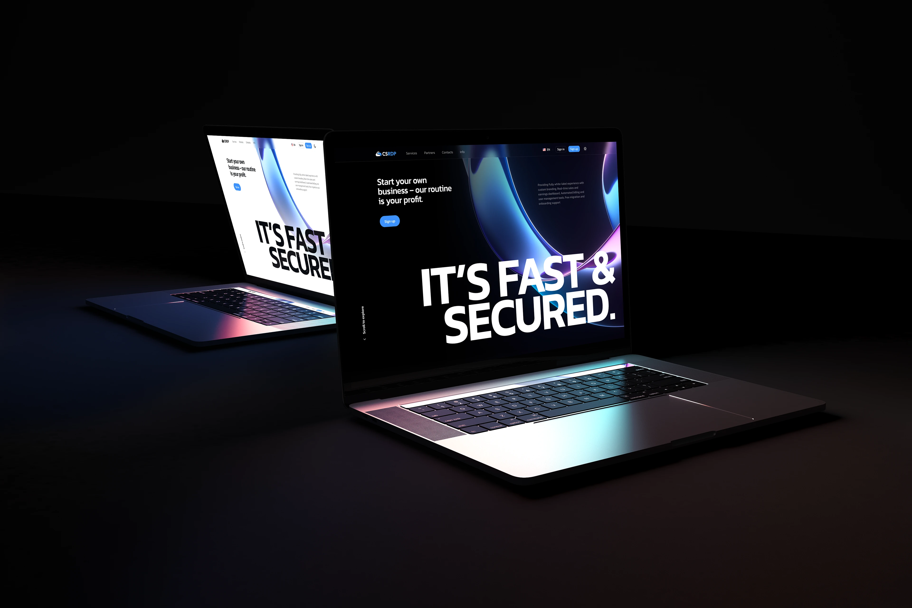 大號標(biāo)題“Start your business, our routine is your profit”簡潔有力,明確核心價值主張。