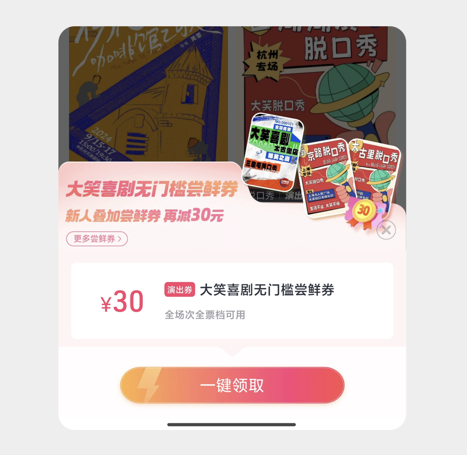 大麥首頁的自動彈出領(lǐng)券設(shè)計,把 “激勵下單” 和 “氛圍營造” 做到了兼顧。它貼合用戶閑逛瀏覽的場景,彈窗不會讓人覺得突兀干擾,反而能精準擊中潛在消費需求。