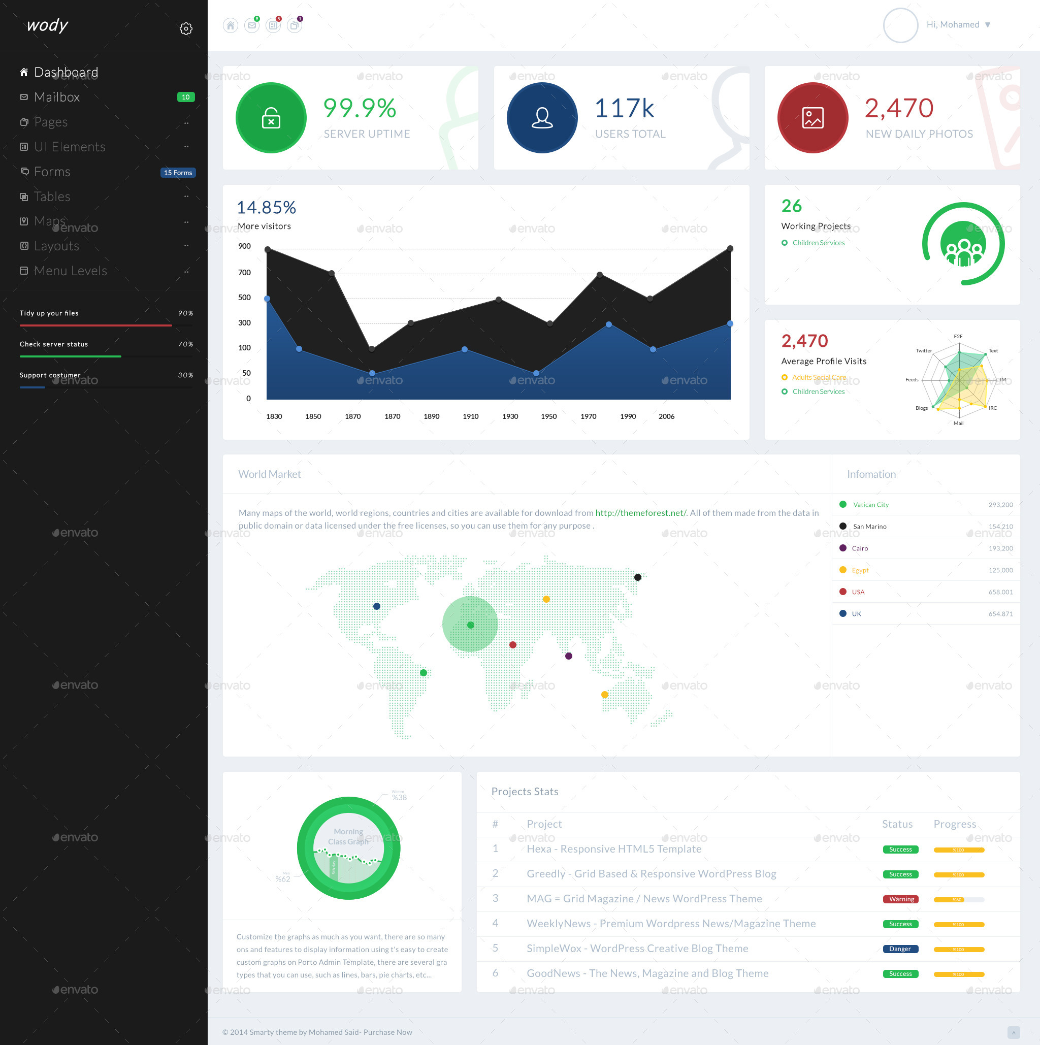 藍(lán)藍(lán)設(shè)計(jì)是一家專注而深入的設(shè)計(jì)公司,致力于提供有效、經(jīng)典卓越的設(shè)計(jì),在工作中,目前有很多客戶選擇購買了Bootstrap ui的框架,客戶們選擇Bootstrap的原因是因?yàn)樗目蚣苤性S多組件已經(jīng)寫好,js等很方便直接引用,程序員們只需直接用就可以,可以把工作的重心放在后臺程序的開發(fā)上。但是Bootstrap ui只是提供了各種元素,無法直接使用,需要進(jìn)行二次設(shè)計(jì)和開發(fā)。藍(lán)藍(lán)設(shè)計(jì)做了許多這樣的工作,包括整合客戶的業(yè)務(wù)和需求重新設(shè)計(jì)頁面的風(fēng)格和布局,最后切圖修改Bootstrap ui的css,這里是我們工作前收集的國外各種風(fēng)格扁平化后臺管理界面,做成系列欣賞,與大家分享~~~~