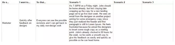 把它想成是論文的論點,這就是設計的核心。早在開發工作之前,這里就是用戶情景演繹的地方。