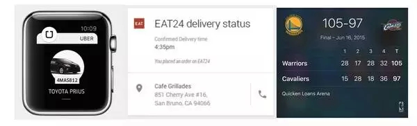 通知會以更「智能」的形式出現,不會是現在的小廣告推送形式,也不會是類似 Widget 常駐的形式,而更接近「手表屏幕」大小,按需出現,可交互的、功能相對完整的界面(即使是在手機上而不是手表上),用戶甚至可以永遠不打開一個 App,而能夠享受 App 提供的全部功能。
