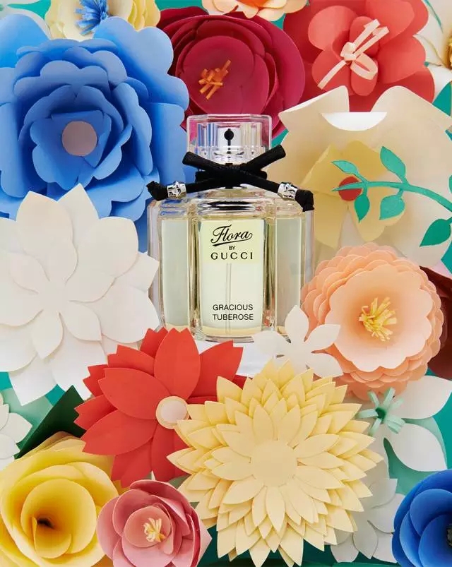 例如下面的這幅GUCCI的香水海報,雖然顏色五彩繽紛,看起來卻不顯得凌亂。總體來說,其實也就是三種色系在相互搭配,藍色系、紅色系和黃色系。而橙色系的色彩就有朱紅和貝殼粉。與此搭配的黃色的明度較高而純度較低,顯得比較淡,而為了對比,也有少量深紅。這里的深紅和藍綠色系的出現給畫面降溫,而黃色和橙色又給畫面升溫,整個色溫適中,因此整個搭配感覺非常協調。