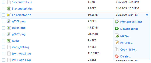 如果每一行里都有多種操作,可以通過鼠標懸停或者單擊行的時候顯示這些操作。DropBox通過一個二級菜單展示了每個文件的多種操作,有效地使用了這種方式。