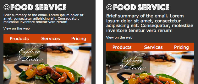 嚴禁復雜 —— 尤其是在郵件上。始終避免使用復雜的結構,否則在小屏幕上渲染時一定會失敗。請記住許多設備是不支持媒體查詢的(例如谷歌郵件),所以我們不能指望成熟的內容重排技術。