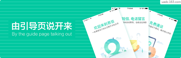 以易信為例,采用文字與水彩插圖結(jié)合的方式,文字分為2個層次,大標(biāo)題與小標(biāo)題,大標(biāo)題是對主功能的概括,小文字是對其功能模塊的詳細(xì)描述或進(jìn)一步補(bǔ)充說明。