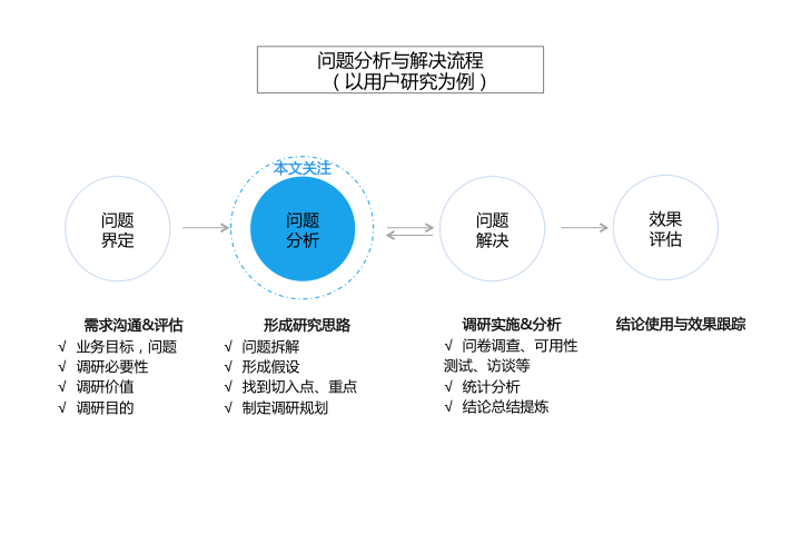 在看多人眼中,用研就像是“工具箱”,里面裝滿了各種解決問題的方法,比如訪談、卡片分類等等,所以很多人會非常希望了解到有用的,新的調研方法或工具,甚至有人提調研需求時也會說:“我想做個問卷調查,。。。”。但本文重點講的思路而不是方法,一來是介紹方法的資料已經很多了; 二來我越來越覺得思路決定方法,清晰的思路是選擇和讓方法發揮作用的前提。