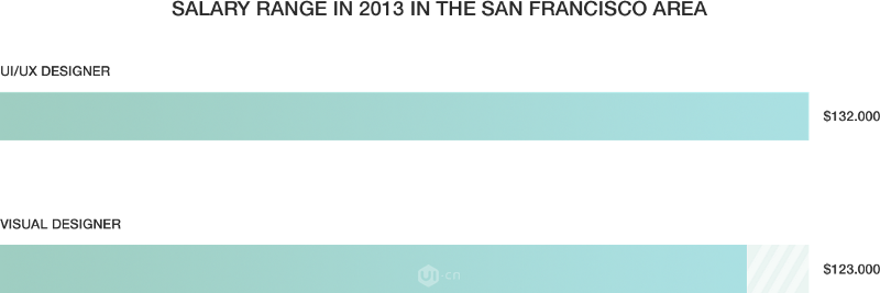 市場本身就是多學科性的。由Dashburst的圖表得出,擁有至少兩種技能的人,例如UI/UX設計或者UI/前端開發,會得到比UI(視覺)設計師每年多10k的薪水。
