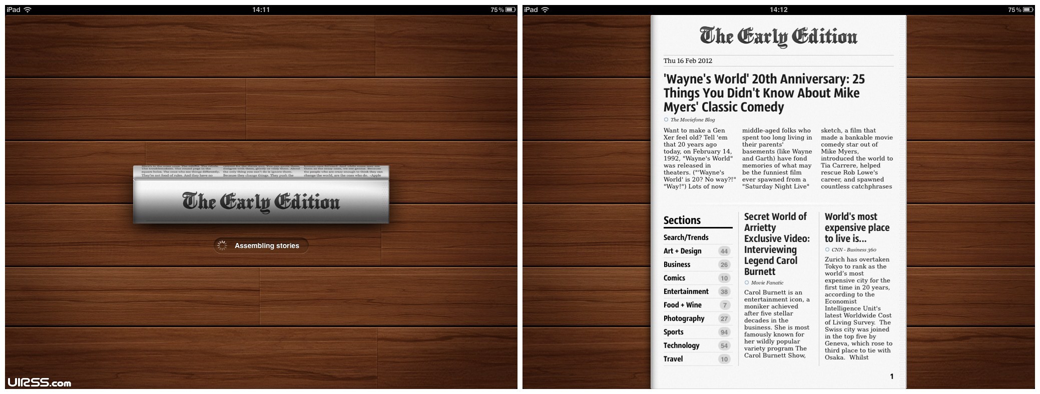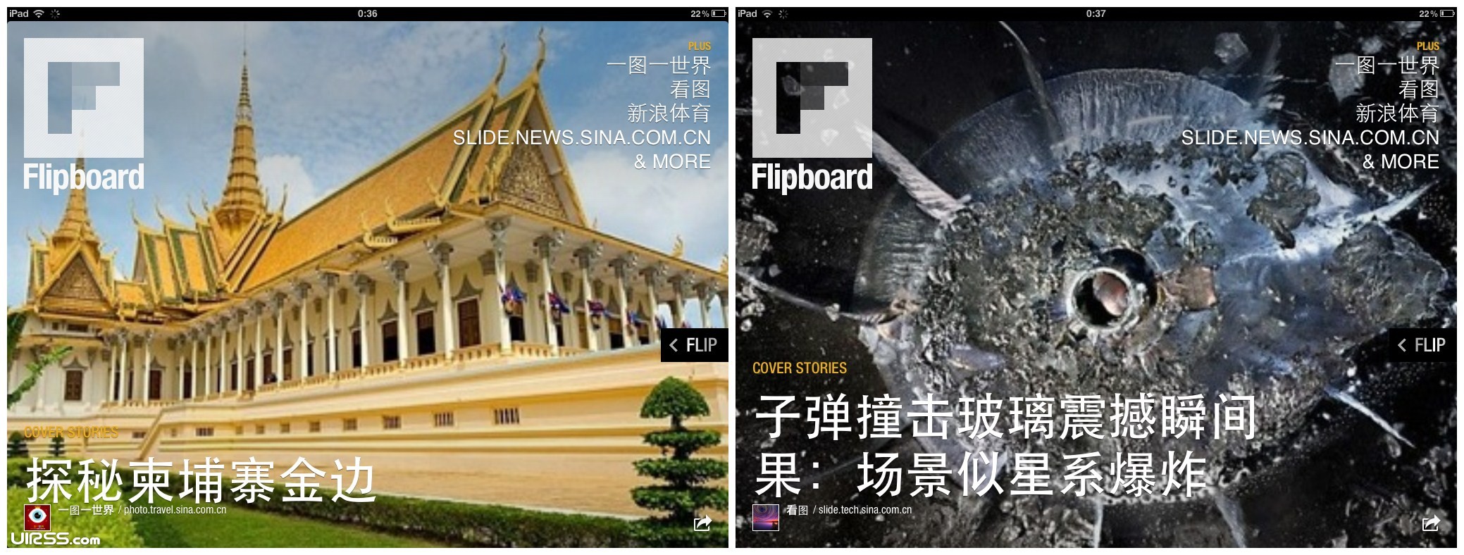 如Flipboard打開應用時,cover從舊版的固定圖片變為你訂閱內容的圖片,在第一時間建立起閱讀內容和用戶的聯系,在等待過程的同時閱覽正在更新的信息。