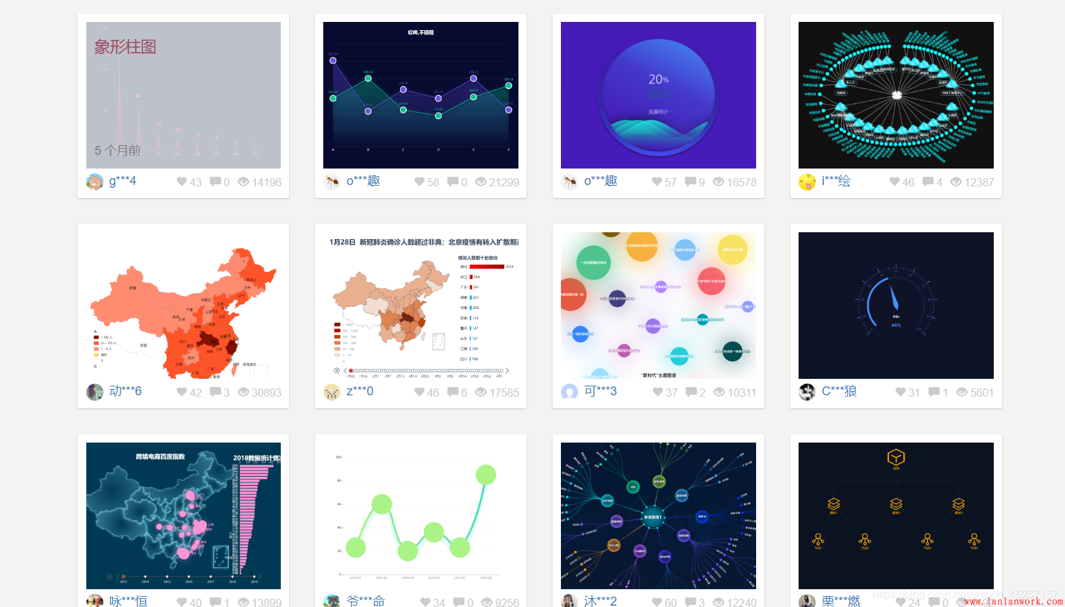 官方自帶的圖例,可能在很多時候并不能滿足我們的需要,在社區這里可以找到一些基于echart的高度定制好的圖表,相當于基于jquery開發的插件,這里是基于echarts開發的第三方的圖表。