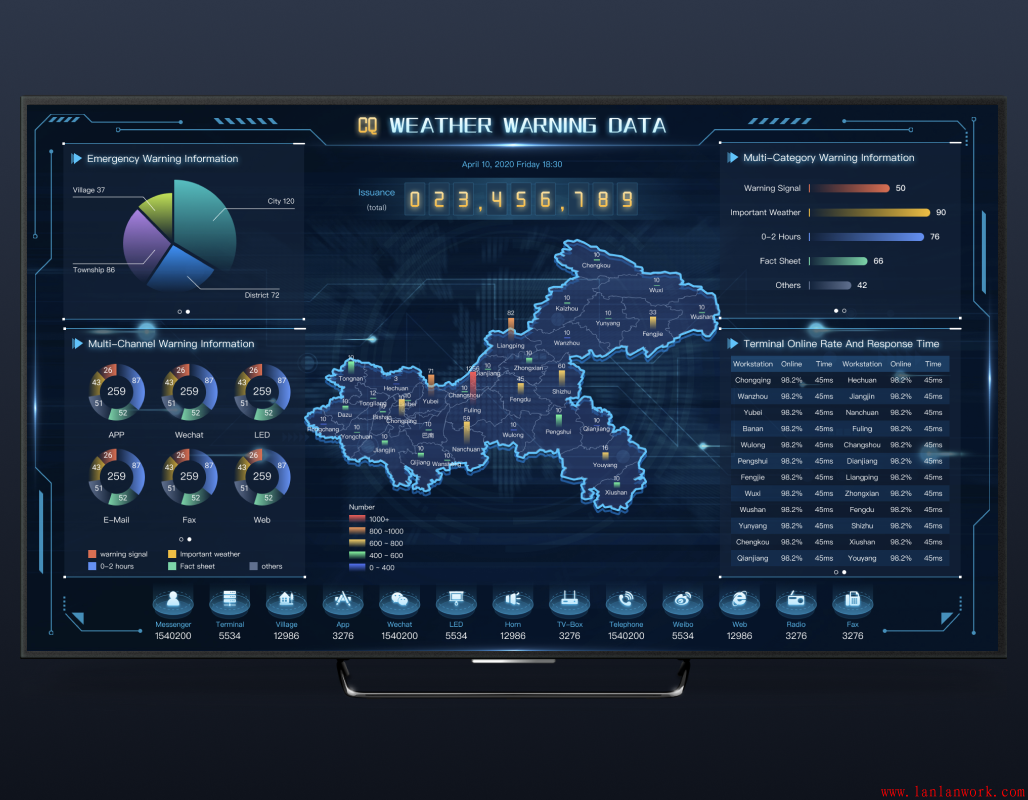 大屏可視化界面設計可謂是當今行業、企業發展的見證,生動直觀地再現了行業、企業的全貌。不僅作為展示,方便了解、監督;同時可以作為一個有效的管理平臺,帶來效益。大屏界面面向范圍廣,協同性好,易于被采用。下面幾個大屏的界面設計,沉穩的背景上,加上亮色作為點綴和強調。既不失其風格,又富有靈動性。