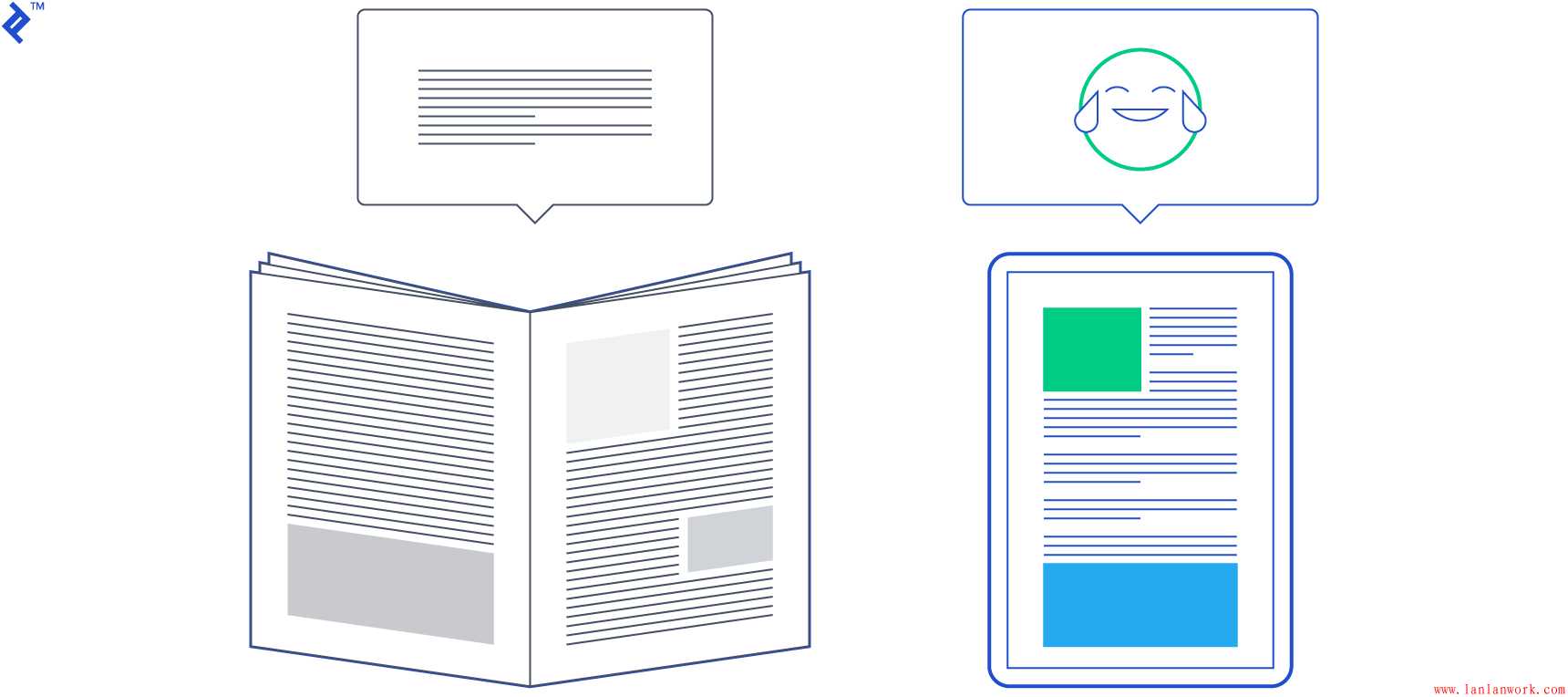 報紙必須迅速調整他們的設計以適應新技術。其他內容產業也紛紛效仿。