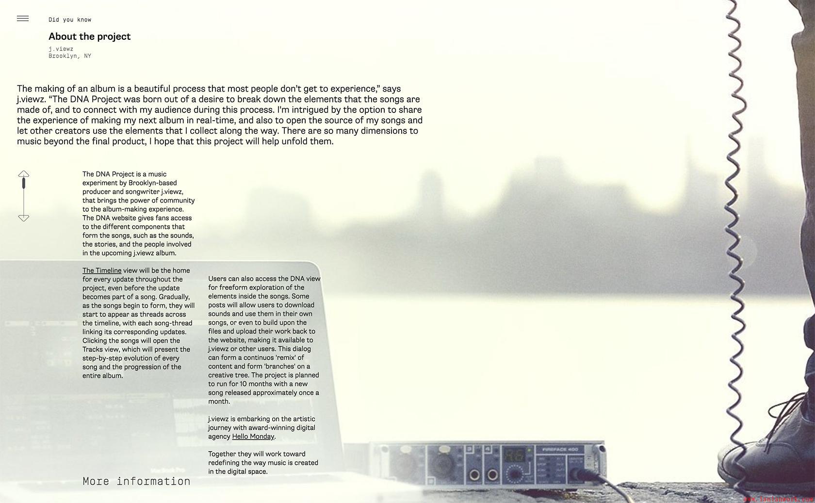 例如,DNA項目是一個使用一系列脫節層次結構來傳達音樂家專輯創意結構的網站。該網站的結構很復雜,專輯的結構也是如此。