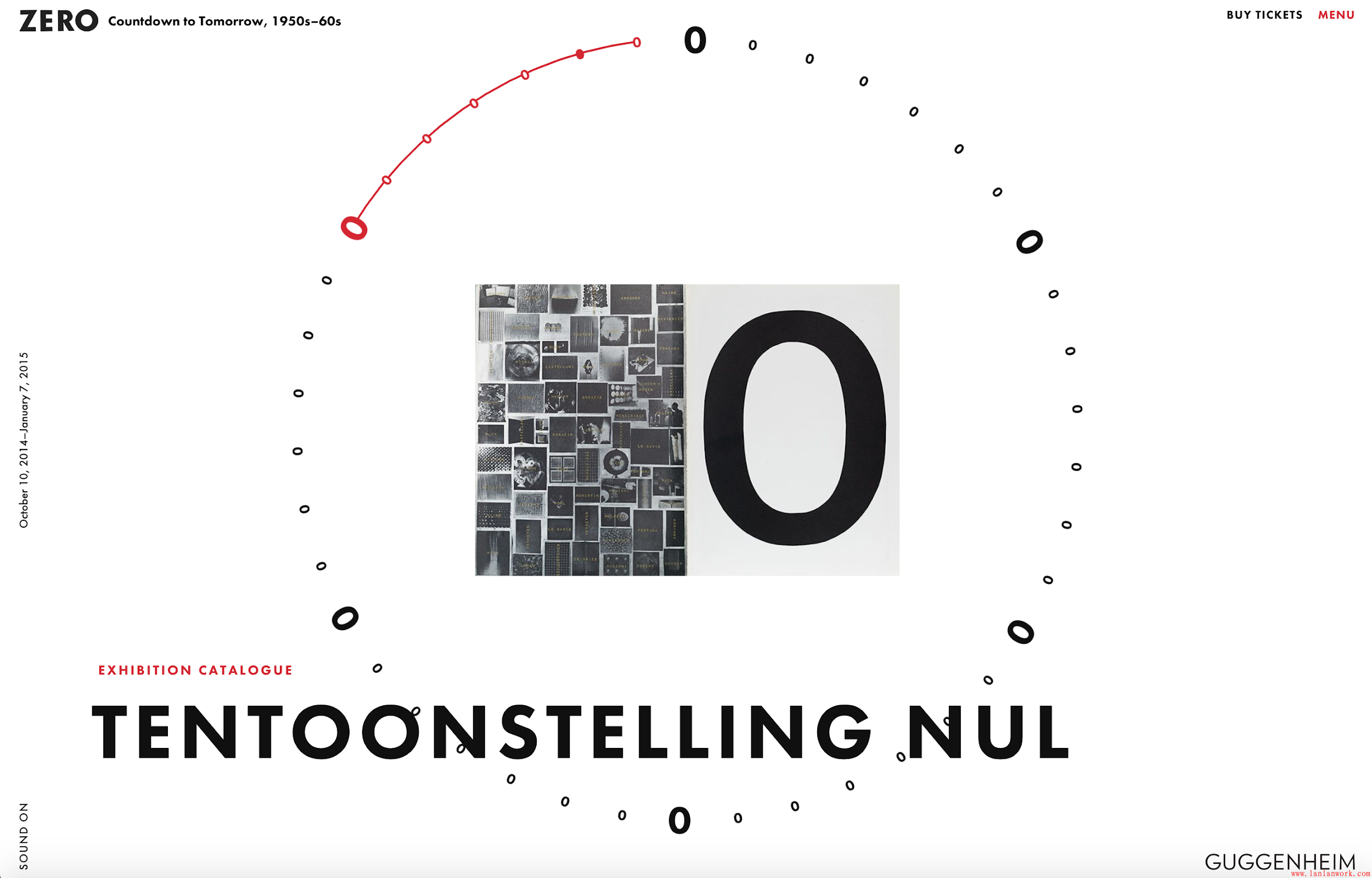 由于其在集體的創造性工作中的重要性,為古根海姆德國藝術家組織ZERO展覽創建的網站使用聲音作為大氣背景,并且作為導航網站時的反饋形式。大膽的鈴聲建立代表主題開頭的部分,而第三級項目則在后臺點擊。