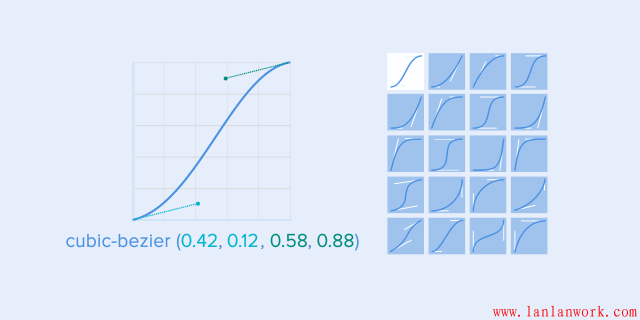 有一個立方貝塞爾函數常用來描述這種速度曲線。之所以叫立方是因為它是基于2個點來的。第一個點在坐標軸中是(0,0)(左下),最后一個點是(1,1)(右上)。
