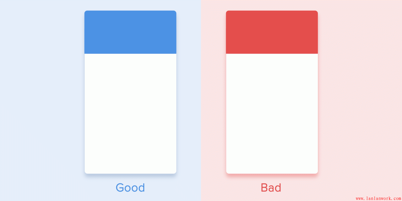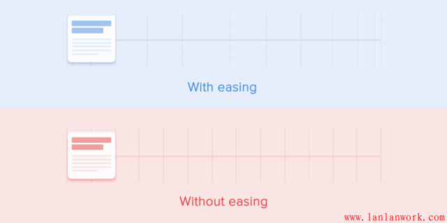 還需要記住的一點就是,無論在什么平臺,動畫的持續時間不僅跟它的移動距離有關,還跟它本身的大小有關系。小的元素或者變化不大的動畫應該要移動的更快,而大的元素或者復雜的元素持續時間稍長一些看起來會更好。