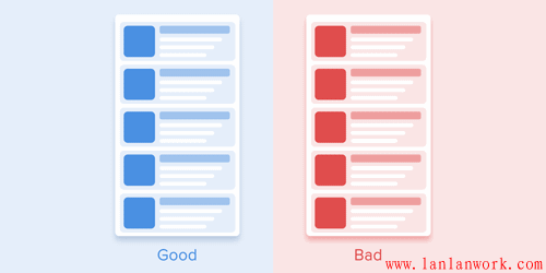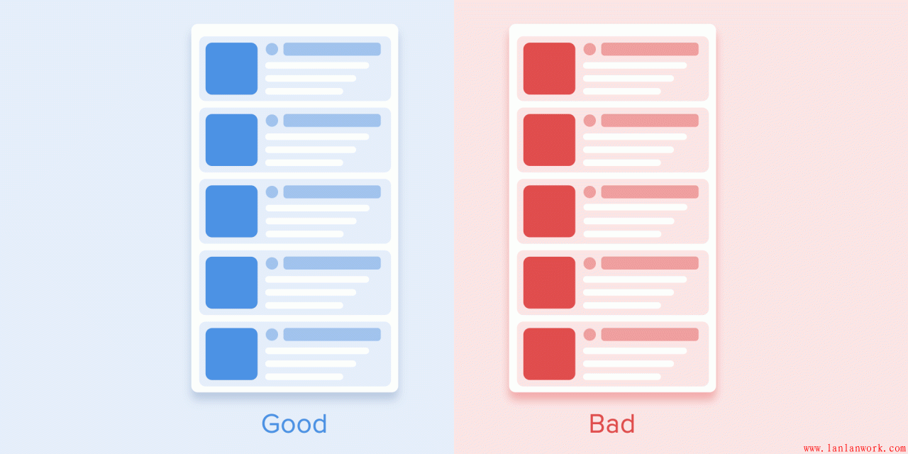 列表項的出現應該只允許有一個短暫的延遲。每一個新列表項的出現間隔應該在20-25ms之間。元素出現太慢的話,會讓用戶感到很不爽。