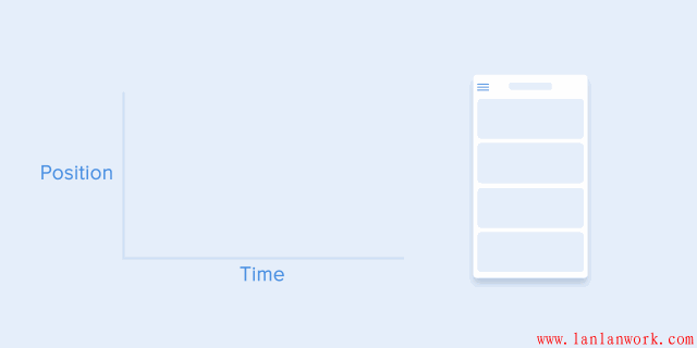 物體沿曲線移動的路徑必須與滾動界面的方向重合。例如,在下面的例子中,我們可以上下滾動界面,相應地,卡片以垂直的方式展開更合適——先向右,然后向下。
