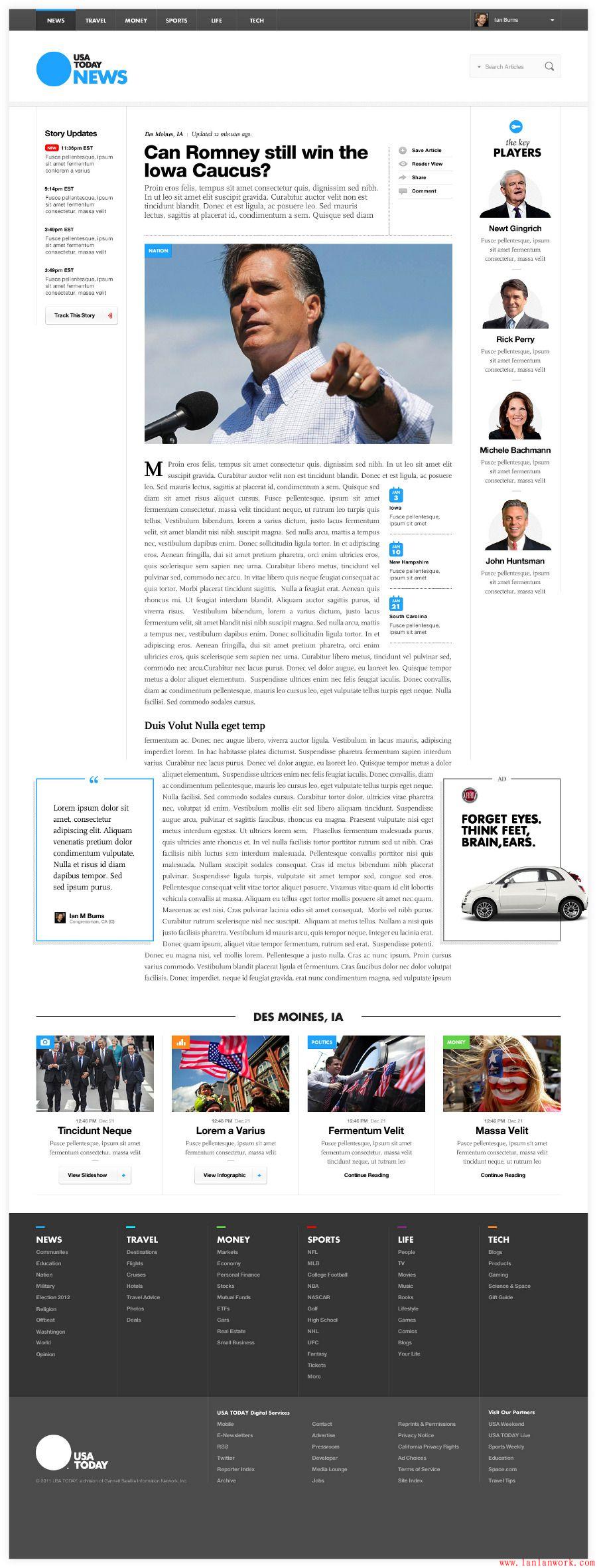 新聞類的網站就是以內容為主的,因此我們要把重點放在文章的內容上。醒目的標題最能引起用戶的注意,因此要把新聞標題設置的醒目而且放在最顯眼的位置。文章的內容要求精、簡,提取新聞的精華簡單的提供主要的信息。精簡用戶閱讀的內容的時間,讓用戶關注網站上更多的其他內容,延長用戶停留在網站上的時間。最后我們來看內容的時效性。新聞的時效性尤其重要,大家都喜歡了解最新的新聞動態,因此及時的更新網站,及時的提供最新的新聞,讓更多的用戶看過來!