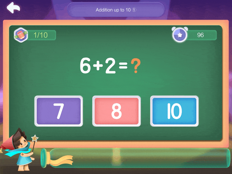 在恐龍數學中,把反饋的差異化重點放在音效上,在單次操作正確與多次連續操作正確時提供不同的語音反饋,比如常規的是“Yeah”多次正確時說“你真棒”等。下圖是競品的 gif,具體的音效大家可以去網上找視頻聽聽看。