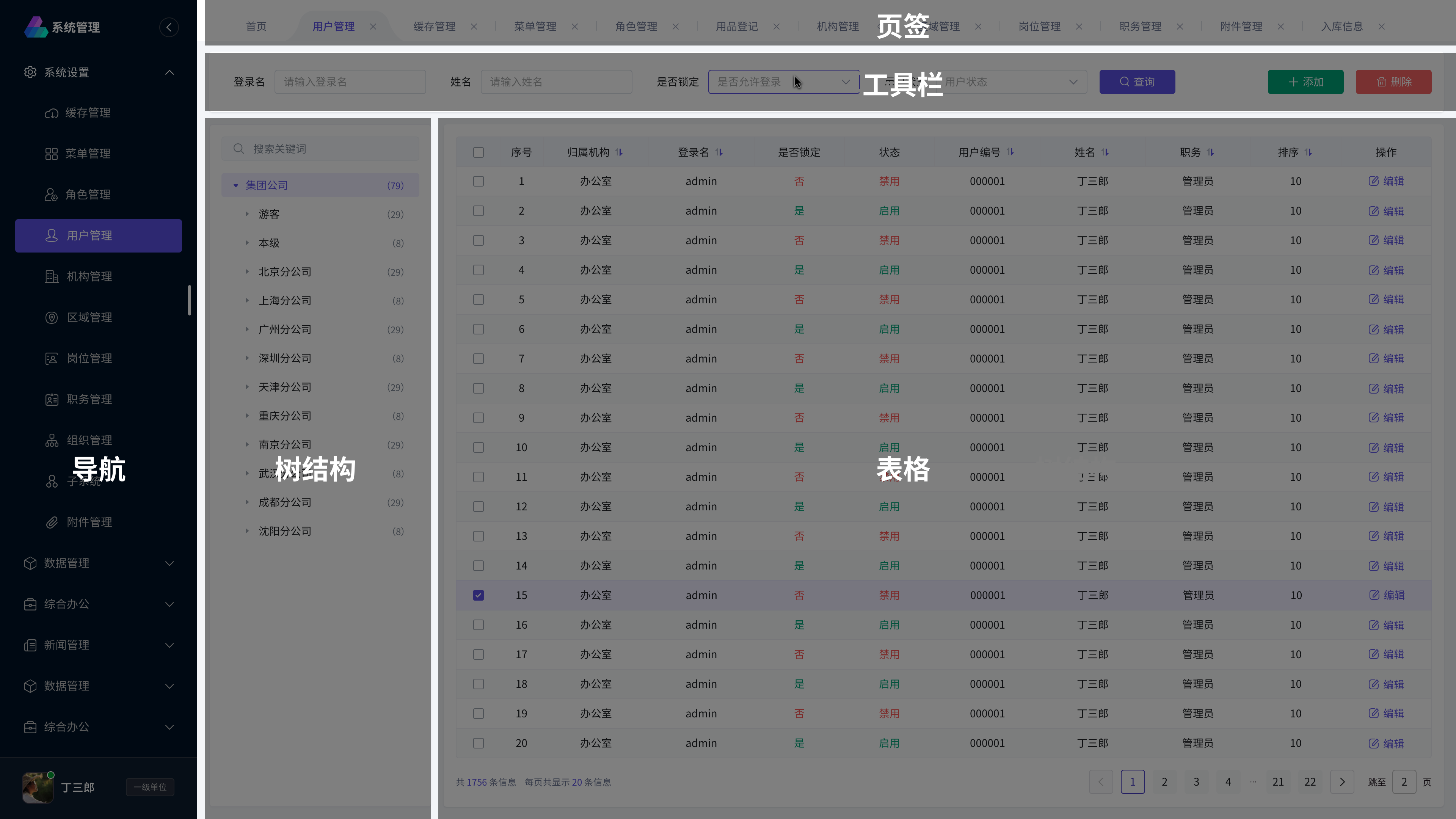 展示靈活(側邊導 航可收折,收折過后用戶的橫向核心空間將會增大大,頁面展示效率也會大大提高)