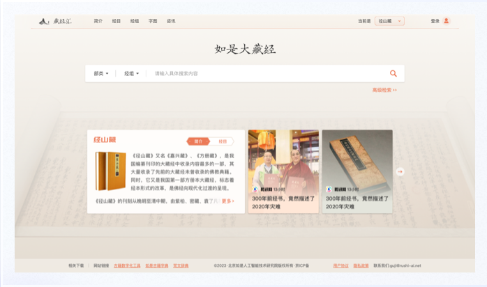 古書按列呈現,每一列都制成為長卡片,古體字和簡體字一一對應,內容和背景區分開且大量留白,列與列劃分明顯