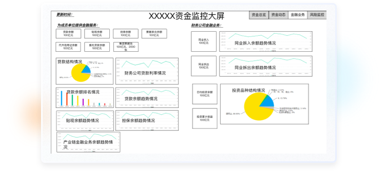 右側(cè)是客戶給的原型,只是把要展示的數(shù)據(jù)簡(jiǎn)單羅列了一下。考慮到大屏應(yīng)用場(chǎng)景,比如公司會(huì)議,集團(tuán)視察,行業(yè)參觀等,都是宏觀數(shù)據(jù)展示為主。所以在設(shè)計(jì)時(shí)不僅要考慮美觀性,更要考慮到整體的交互布局以及交互方式,確保關(guān)鍵數(shù)據(jù)和指標(biāo)在界面上以醒目的方式呈現(xiàn),以便用戶快速識(shí)別和理解。設(shè)計(jì)清晰簡(jiǎn)潔的布局,避免信息過(guò)載,使用戶能夠輕松找到需要的信息。