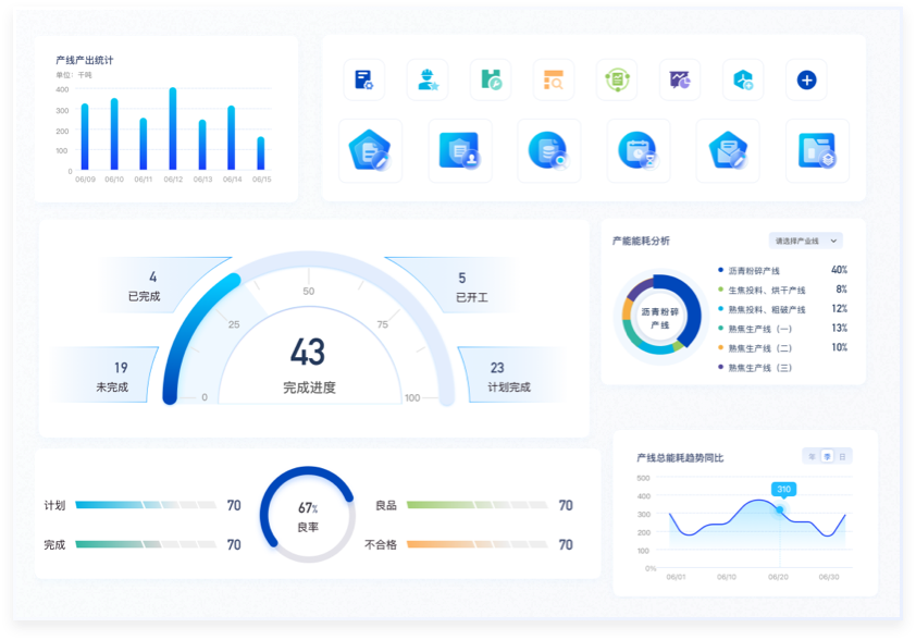 借助圖形手段把相對復雜抽象的數據,條理清晰地傳達出去,給每個模塊的數據根據其業務性質選擇合適的圖形表達